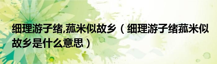 大家好,小安來為大家解答以上問題。細理游子緒,菰米似故鄉,細理游子緒菰米似故鄉是什么意思很多人還不知道,現在讓我們一起來看看吧!