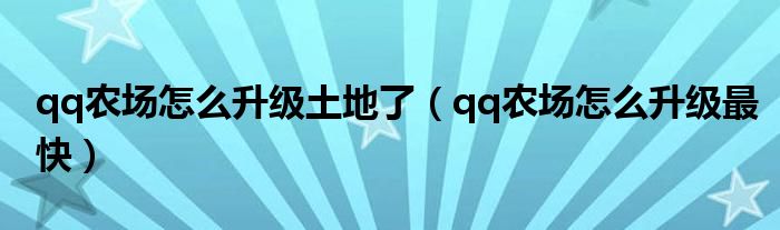 大家好,小安來為大家解答以上問題。qq農場怎么升級土地了,qq農場怎么升級最快很多人還不知道,現在讓我們一起來看看吧!
