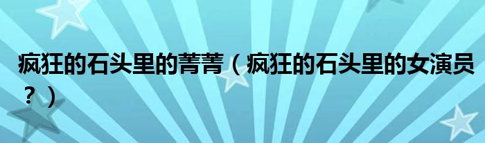 大家好,小安來為大家解答以上問題。瘋狂的石頭里的菁菁,瘋狂的石頭里的女演員?很多人還不知道,現在讓我們一起來看看吧!
