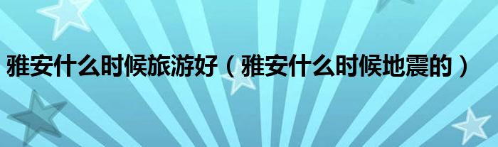 大家好,小安來為大家解答以上問題。雅安什么時(shí)候旅游好,雅安什么時(shí)候地震的很多人還不知道,現(xiàn)在讓我們一起來看看吧!