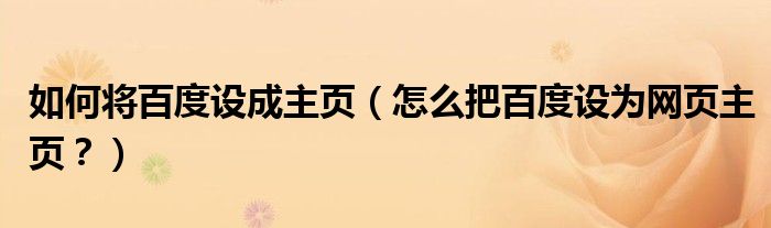 大家好,小安來為大家解答以上問題。如何將百度設成主頁,怎么把百度設為網頁主頁?很多人還不知道,現在讓我們一起來看看吧!