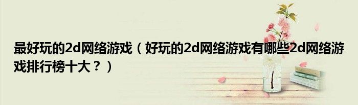 大家好,小安來為大家解答以上問題。最好玩的2d網(wǎng)絡(luò)游戲,好玩的2d網(wǎng)絡(luò)游戲有哪些2d網(wǎng)絡(luò)游戲排行榜十大?很多人還不知道,現(xiàn)在讓我們一起來看看吧!