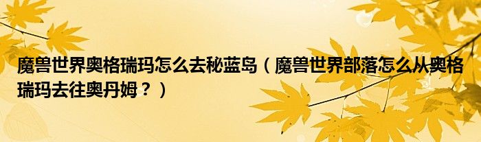 大家好,小安來為大家解答以上問題。魔獸世界奧格瑞瑪怎么去秘藍島,魔獸世界部落怎么從奧格瑞瑪去往奧丹姆?很多人還不知道,現在讓我們一起來看看吧!