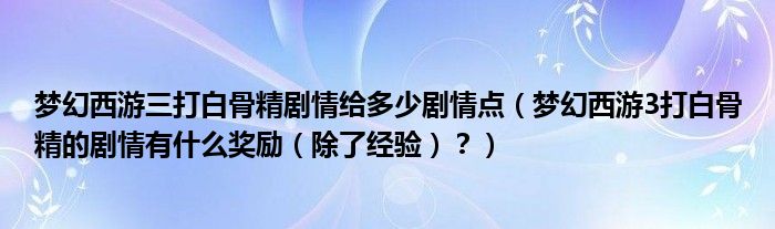 大家好,小安來為大家解答以上問題。夢幻西游三打白骨精劇情給多少劇情點(diǎn),夢幻西游3打白骨精的劇情有什么獎(jiǎng)勵(lì),除了經(jīng)驗(yàn)?很多人還不知道,現(xiàn)在讓我們一起來看看吧!