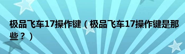 大家好,小安來為大家解答以上問題。極品飛車17操作鍵,極品飛車17操作鍵是那些?很多人還不知道,現(xiàn)在讓我們一起來看看吧!