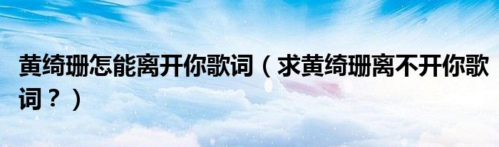 大家好,小安來為大家解答以上問題。黃綺珊怎能離開你歌詞,求黃綺珊離不開你歌詞?很多人還不知道,現在讓我們一起來看看吧!