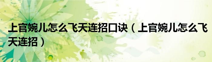 大家好,小安來為大家解答以上問題。上官婉兒怎么飛天連招口訣,上官婉兒怎么飛天連招很多人還不知道,現(xiàn)在讓我們一起來看看吧!
