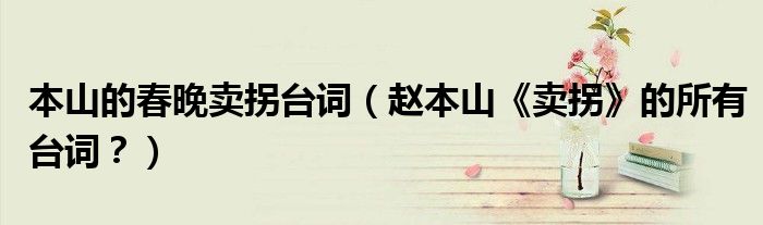 大家好,小安來為大家解答以上問題。本山的春晚賣拐臺詞,趙本山《賣拐》的所有臺詞?很多人還不知道,現在讓我們一起來看看吧!