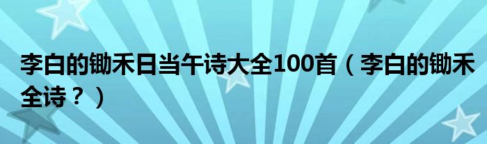 大家好,小安來為大家解答以上問題。李白的鋤禾日當(dāng)午詩大全100首,李白的鋤禾全詩?很多人還不知道,現(xiàn)在讓我們一起來看看吧!