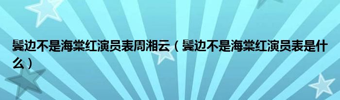 大家好,小安來為大家解答以上問題。鬢邊不是海棠紅演員表周湘云,鬢邊不是海棠紅演員表是什么很多人還不知道,現在讓我們一起來看看吧!