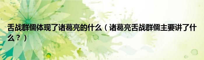 大家好,小安來為大家解答以上問題。舌戰群儒體現了諸葛亮的什么,諸葛亮舌戰群儒主要講了什么?很多人還不知道,現在讓我們一起來看看吧!