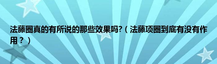 大家好,小安來為大家解答以上問題。法藤圈真的有所說的那些效果嗎?,法藤項(xiàng)圈到底有沒有作用?很多人還不知道,現(xiàn)在讓我們一起來看看吧!