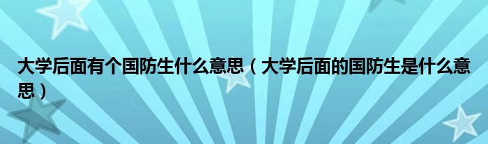 大家好,小安來為大家解答以上問題。大學后面有個國防生什么意思,大學后面的國防生是什么意思很多人還不知道,現在讓我們一起來看看吧!