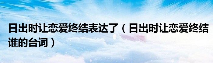大家好,小安來為大家解答以上問題。日出時讓戀愛終結表達了,日出時讓戀愛終結誰的臺詞很多人還不知道,現在讓我們一起來看看吧!