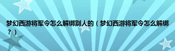 大家好,小安來為大家解答以上問題。夢幻西游將軍令怎么解綁別人的,夢幻西游將軍令怎么解綁?很多人還不知道,現在讓我們一起來看看吧!