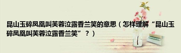 大家好,小安來為大家解答以上問題。昆山玉碎鳳凰叫芙蓉泣露香蘭笑的意思,怎樣理解“昆山玉碎鳳凰叫芙蓉泣露香蘭笑”?很多人還不知道,現在讓我們一起來看看吧!