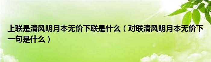 大家好,小安來為大家解答以上問題。上聯是清風明月本無價下聯是什么,對聯清風明月本無價下一句是什么很多人還不知道,現在讓我們一起來看看吧!