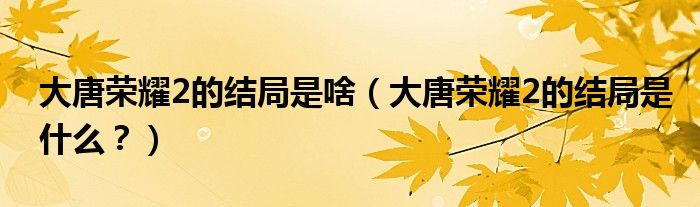 大家好,小安來為大家解答以上問題。大唐榮耀2的結局是啥,大唐榮耀2的結局是什么?很多人還不知道,現在讓我們一起來看看吧!