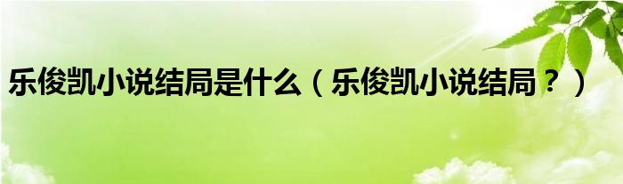 大家好,小安來為大家解答以上問題。樂俊凱小說結局是什么,樂俊凱小說結局?很多人還不知道,現在讓我們一起來看看吧!