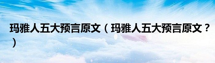 大家好,小安來為大家解答以上問題。瑪雅人五大預言原文,瑪雅人五大預言原文?很多人還不知道,現在讓我們一起來看看吧!