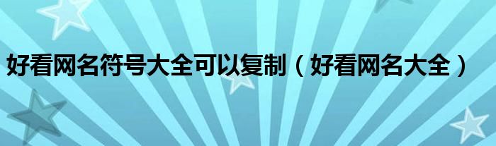 大家好,小安來為大家解答以上問題。好看網(wǎng)名符號大全可以復(fù)制,好看網(wǎng)名大全很多人還不知道,現(xiàn)在讓我們一起來看看吧!