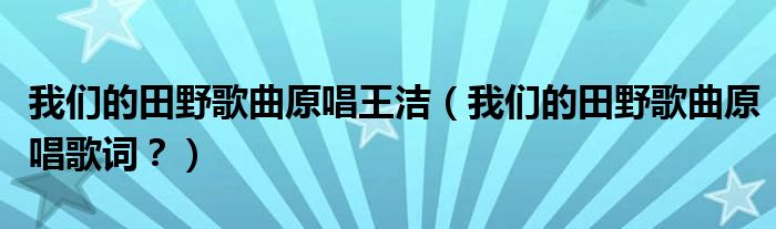 大家好,小安來為大家解答以上問題。我們的田野歌曲原唱王潔,我們的田野歌曲原唱歌詞?很多人還不知道,現在讓我們一起來看看吧!