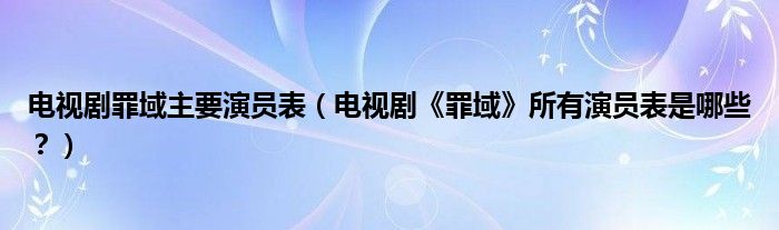 大家好,小安來為大家解答以上問題。電視劇罪域主要演員表,電視劇《罪域》所有演員表是哪些?很多人還不知道,現在讓我們一起來看看吧!