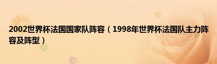 大家好,小安來為大家解答以上問題。2002世界杯法國國家隊陣容,1998年世界杯法國隊主力陣容及陣型很多人還不知道,現在讓我們一起來看看吧!