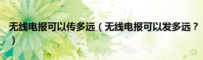 大家好,小安來為大家解答以上問題。無線電報可以傳多遠,無線電報可以發多遠?很多人還不知道,現在讓我們一起來看看吧!