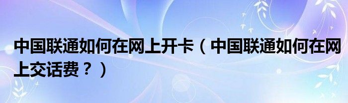 大家好,小安來為大家解答以上問題。中國聯(lián)通如何在網上開卡,中國聯(lián)通如何在網上交話費?很多人還不知道,現(xiàn)在讓我們一起來看看吧!