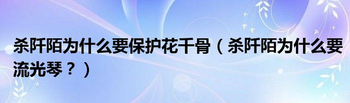 大家好,小安來為大家解答以上問題。殺阡陌為什么要保護花千骨,殺阡陌為什么要流光琴?很多人還不知道,現在讓我們一起來看看吧!