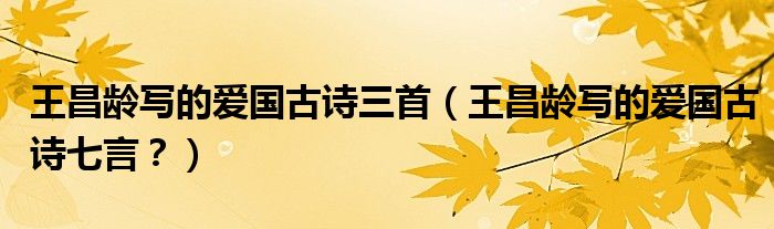 大家好,小安來為大家解答以上問題。王昌齡寫的愛國古詩三首,王昌齡寫的愛國古詩七言?很多人還不知道,現在讓我們一起來看看吧!