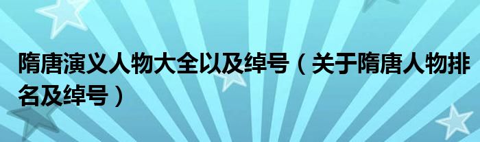 大家好,小安來為大家解答以上問題。隋唐演義人物大全以及綽號,關于隋唐人物排名及綽號很多人還不知道,現在讓我們一起來看看吧!