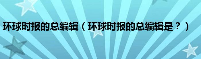 大家好,小安來為大家解答以上問題。環球時報的總編輯,環球時報的總編輯是?很多人還不知道,現在讓我們一起來看看吧!