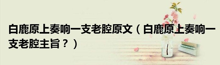 大家好,小安來為大家解答以上問題。白鹿原上奏響一支老腔原文,白鹿原上奏響一支老腔主旨?很多人還不知道,現在讓我們一起來看看吧!