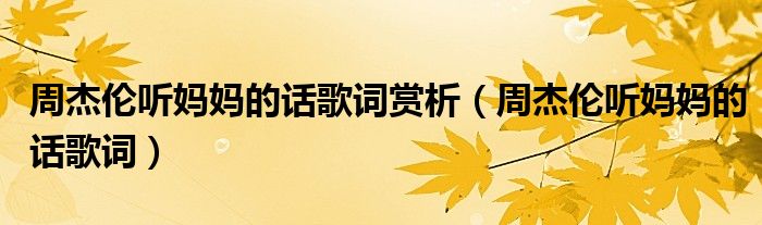 大家好,小安來為大家解答以上問題。周杰倫聽媽媽的話歌詞賞析,周杰倫聽媽媽的話歌詞很多人還不知道,現在讓我們一起來看看吧!