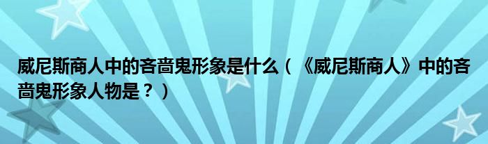 大家好,小安來為大家解答以上問題。威尼斯商人中的吝嗇鬼形象是什么,《威尼斯商人》中的吝嗇鬼形象人物是?很多人還不知道,現在讓我們一起來看看吧!