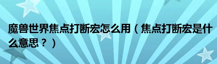 大家好,小安來為大家解答以上問題。魔獸世界焦點打斷宏怎么用,焦點打斷宏是什么意思?很多人還不知道,現在讓我們一起來看看吧!