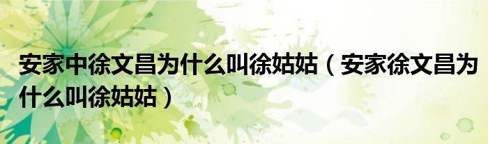 大家好,小安來為大家解答以上問題。安家中徐文昌為什么叫徐姑姑,安家徐文昌為什么叫徐姑姑很多人還不知道,現(xiàn)在讓我們一起來看看吧!