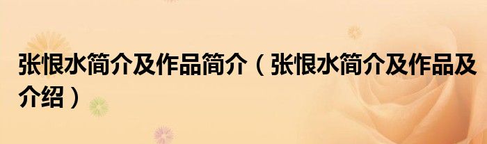 大家好,小安來為大家解答以上問題。張恨水簡介及作品簡介,張恨水簡介及作品及介紹很多人還不知道,現(xiàn)在讓我們一起來看看吧!