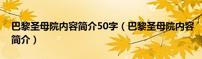 大家好,小安來為大家解答以上問題。巴黎圣母院內容簡介50字,巴黎圣母院內容簡介很多人還不知道,現在讓我們一起來看看吧!