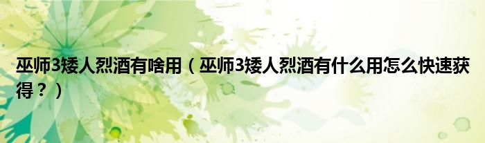 大家好,小安來為大家解答以上問題。巫師3矮人烈酒有啥用,巫師3矮人烈酒有什么用怎么快速獲得?很多人還不知道,現(xiàn)在讓我們一起來看看吧!