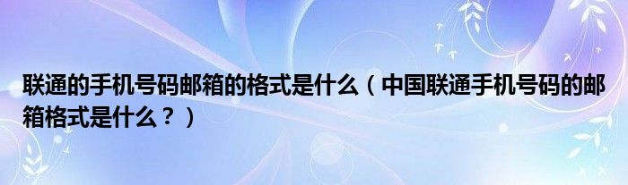 大家好,小安來為大家解答以上問題。聯通的手機號碼郵箱的格式是什么,中國聯通手機號碼的郵箱格式是什么?很多人還不知道,現在讓我們一起來看看吧!