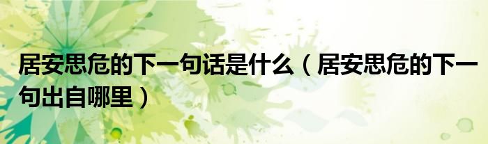 大家好,小安來為大家解答以上問題。居安思危的下一句話是什么,居安思危的下一句出自哪里很多人還不知道,現(xiàn)在讓我們一起來看看吧!