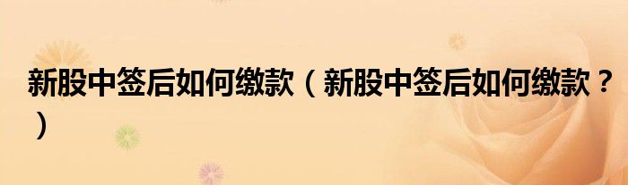 大家好,小安來為大家解答以上問題。新股中簽后如何繳款,新股中簽后如何繳款?很多人還不知道,現在讓我們一起來看看吧!