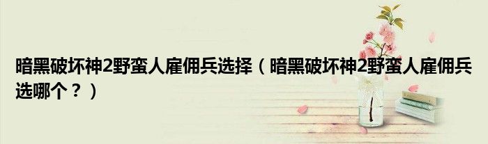大家好,小安來為大家解答以上問題。暗黑破壞神2野蠻人雇傭兵選擇,暗黑破壞神2野蠻人雇傭兵選哪個?很多人還不知道,現在讓我們一起來看看吧!