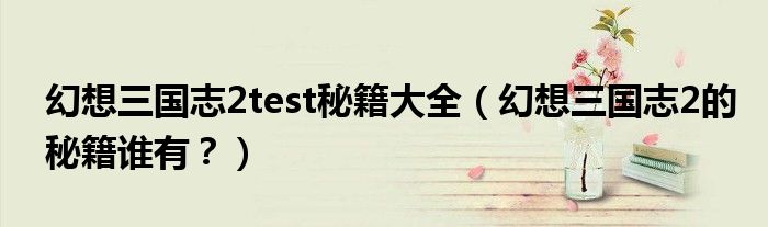 大家好,小安來為大家解答以上問題。幻想三國志2test秘籍大全,幻想三國志2的秘籍誰有?很多人還不知道,現在讓我們一起來看看吧!
