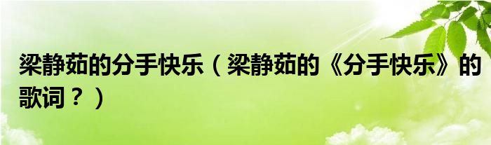 大家好,小安來為大家解答以上問題。梁靜茹的分手快樂,梁靜茹的《分手快樂》的歌詞?很多人還不知道,現(xiàn)在讓我們一起來看看吧!