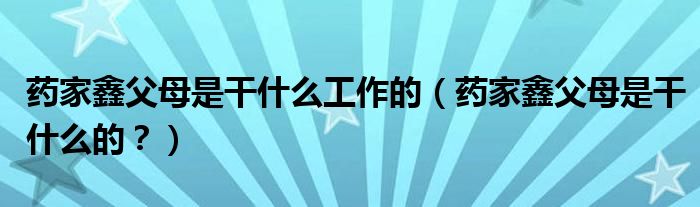 大家好,小安來為大家解答以上問題。藥家鑫父母是干什么工作的,藥家鑫父母是干什么的?很多人還不知道,現在讓我們一起來看看吧!