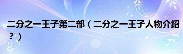 大家好,小安來為大家解答以上問題。二分之一王子第二部,二分之一王子人物介紹?很多人還不知道,現在讓我們一起來看看吧!